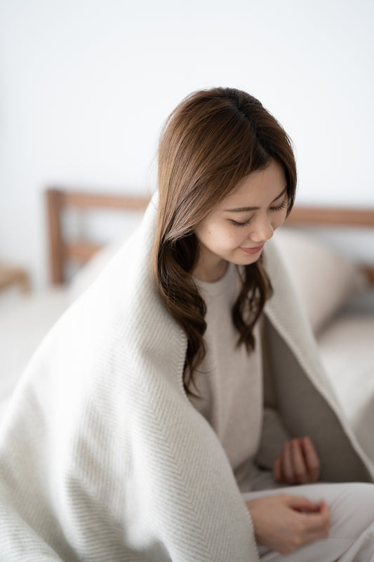 実は、ウール毛布は夏の眠りにも寄り添ってくれる存在です。クーラーの冷たさに頼りすぎず、汗もすっと吸って、朝までさらり。見た目はあたたかいのに、夏でも快適に眠れる――その意外な心地よさを、スタッフが実際に体験しました。